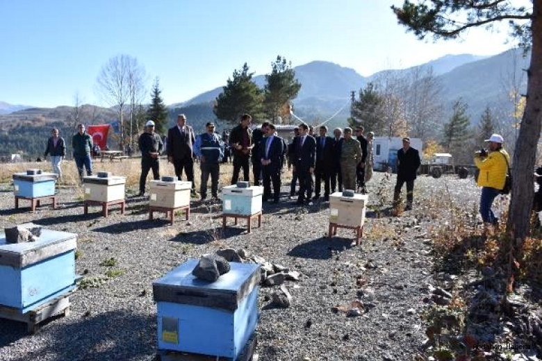 Ardahan Valisi Mustafa Masatlı, Kafkas Arısı Üretim, Eğitim ve Gen Merkezi Müdürlüğü Posof İşletme Sahası'nı gezerek, yetkililerden bilgi aldı. Yılda 800 ana arı üretimi gerçekleştirilen işletmeyle ilgili Vali Masatlı'ya bilgi veren Gen Merkezi Müdürü Sinan Aydın, Kafkas Arısı'nın saflığıyla ilgili çalışmalar yürüttüklerini bildirdi. Ardahan'da iki tane işletme sahası bulunduğunu kaydeden Aydın, "Ardahan merkez ve Posof'taki üretim sahamızda ana arı üretimi gerçekleştiriyoruz. Bölgemiz ve il dışındaki arıcıların ana arı ihtiyacını karşılamaya çalışıyoruz. Posof işletmemizde 180 kovan arımız var. Yıllık 800 adet ana arı üretimi gerçekleştiriyoruz" dedi. Vali Masatlı, işletme sorumlusu Selçuk Bayraktar'ı çalışmalarından dolayı tebrik etti.
