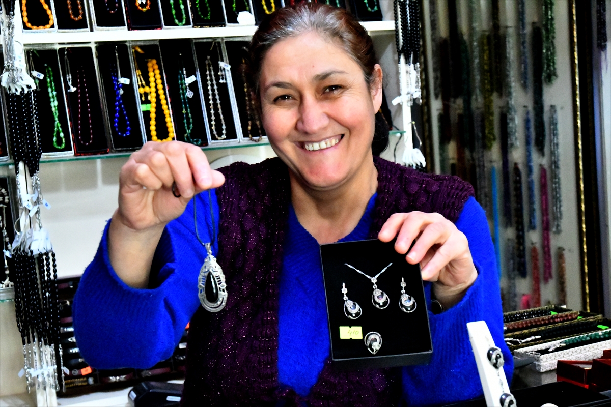 Opsidyen ustası ve işletme sahibi İlkay Nar, AA muhabirine, yaptığı açıklamada, Anneler Günü’ne özel tasarımlı hediyelik obsidyen takılarını hazırladıklarını söyledi.