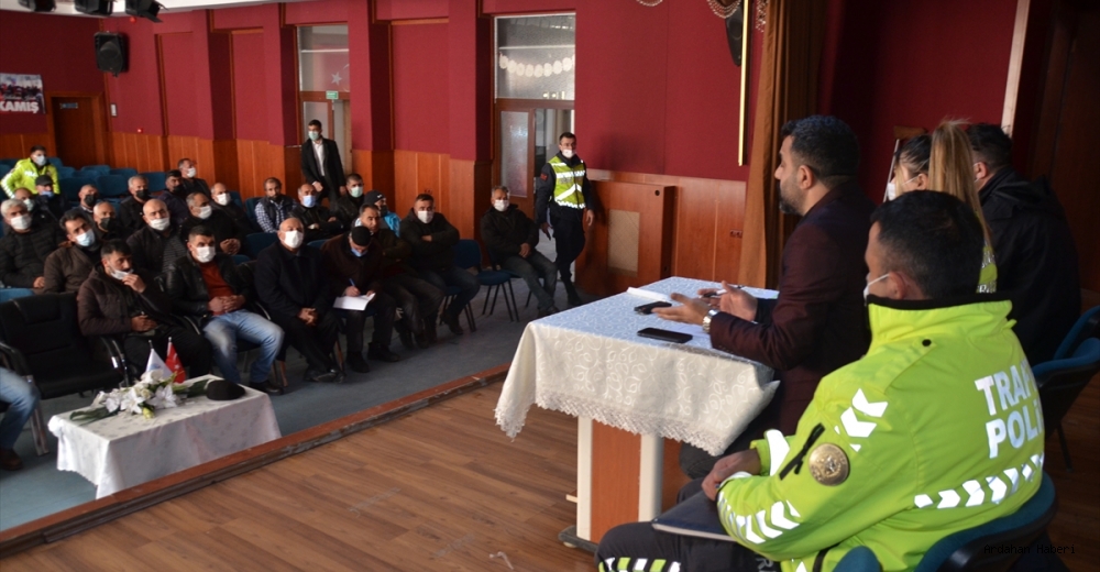 İlçe Mili Eğitim Müdürlüğü organizasyonuyla Sarıkamış Halk Eğitimi Merkezi'nde yapılan toplantıya, İlçe Jandarma Komutanlığı Jandarma Trafik Personeli Emniyet Müdürlüğü Trafik Büro Amirliği ekipleri ve Milli Eğitim Şube Müdürlüğü personeli ile taşımalı eğitim uygulaması kapsamında taşıma yapan öğrenci servis şoförleri katıldı.