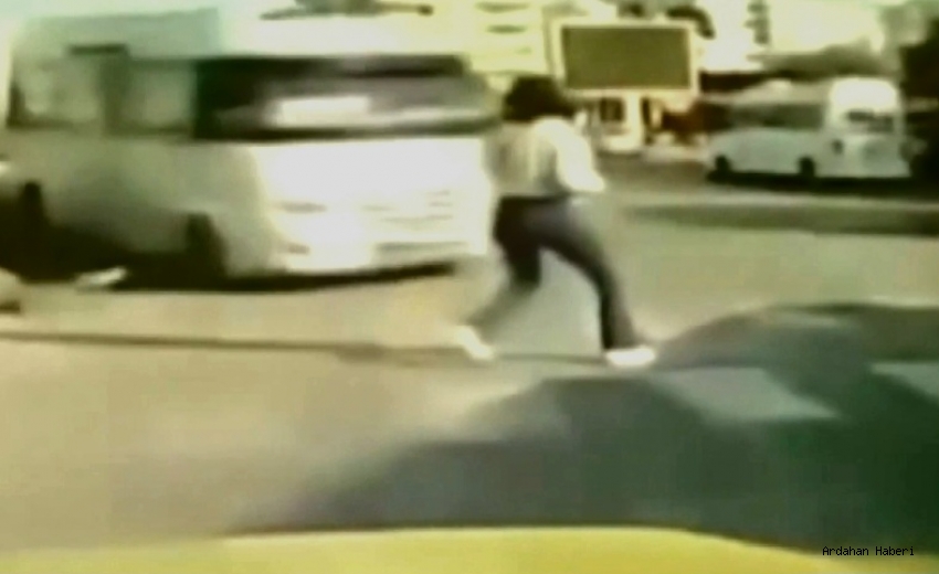 Bu sırada yaya geçidinden geçmeye çalışan bir kişi, hızla üzerine gelen minibüsü fark ederek son anda geri çekildi. Vatandaşın saniyelerle kurtulduğu o anlar, çevredeki bir iş yerinin güvenlik kamerasına yansıdı.