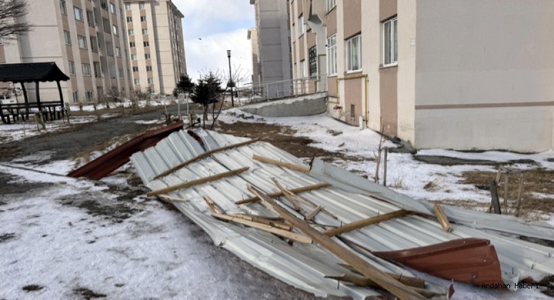 Şiddetli rüzgar, Ardahan merkezindeki bazı binaların çatılarını uçurdu
