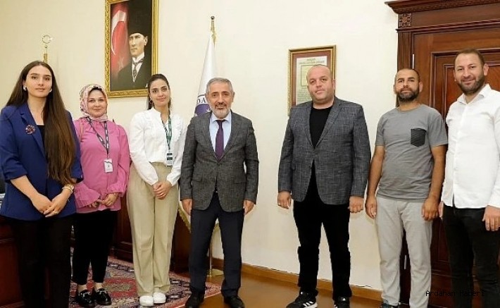 Yeşilay Ardahan Şubesi Başkanı Tolgay Gökdemir ve beraberindeki heyet, Ardahan Üniversitesi Rektörü Prof. Dr. Mehmet Biber’i makamında ziyaret etti. Ziyarette Yeşilay Şube Personeli Derya Özer, Kadın Komisyon Başkan Yardımcısı Firdevs Cansızlar, Gençlik Komisyon Başkanı Ömer Ülaş ve YEDAM Sosyal Hizmet Uzmanı Feyzanur Öztürk de yer aldı.