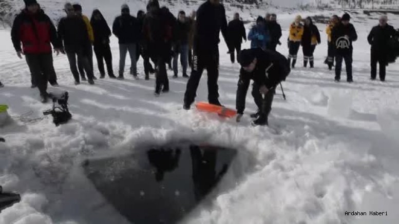 Çıldır Gölü'nün su sporları alanında tanıtılması ve farkındalık oluşturmak amacıyla Ardahan Valiliğinin organizasyonuyla bölgeye gelen dalgıç ekibi, yaklaşık 2 metrekare alanda buz kesip dalış için hazırlık yaptı. 3 kişilik ekibin yaklaşık 20 dakikalık dalışı sırasında aynı zamanda gölün altı da görüntülendi.