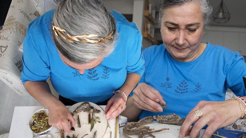İl Kültür ve Turizm Müdürlüğünde arkeolog olarak çalışan 52 yaşındaki Songül Erbay, ileride tablo yapma düşüncesiyle 25 yıl boyunca görev yaptığı kazı alanlarında yaprak, taş, ölü böcek ve dal gibi malzemeleri topladı. Çevresindekilerin "çalı çırpıdan ne olur" düşüncesine aldırış etmeyen Erbay, toplama işini sabırla sürdürdü.Erbay, yıllar boyunca topladığı malzemeleri özel kutularda muhafaza etti. Geçen yıl emekli olan Erbay, bu düşüncesini hayata geçirmek için evinin bir bölümünü atölyeye çevirdi.Atık kartonları da arka fon olarak kullanan Erbay, herhangi bir kimyasal işlem ya da boyama yapmadan taş, yaprak, ölü böcek ve dal gibi malzemelerden tablo hazırlamaya başladı.Topladıklarının bütünlüğünü bozmadan orijinal haliyle kullanan, bazı tablolarında antik kentlerin görselini de işleyen Erbay, açmayı planladığı sergiye hazırlanıyor.