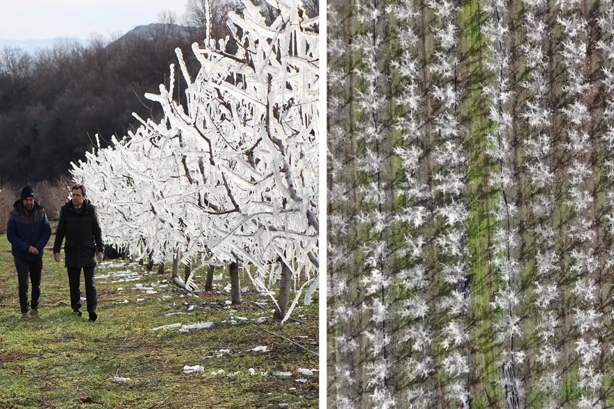Amasya'nın Taşova ilçesine bağlı Yerkozlu köyünde 6,5 dekarlık bahçede nektarin ağaçları bulunan çiftçi Fatih Şahin, ağaçların üzerine su püskürterek yüzeylerinin donması sayesinde geçen yıl geceleri etkili olan ilkbahar donlarından meyvelerinin tamamını korumayı başardı. Bu Şubat'ta bölgede etkili olan kar yağışı sonrası oluşan aşırı soğuklara karşı da aynı yöntemi deneyen 45 yaşındaki Şahin'in ağaçlarının tamamında buz sarkıtları oluştu.