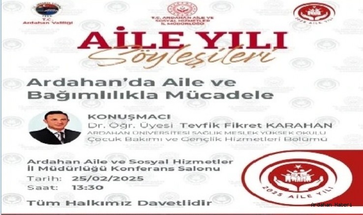 Ardahan Aile ve Sosyal Hizmetler İl Müdürlüğü, "Ardahan’da Aile ve Bağımlılıkla Mücadele" konulu bir söyleşi düzenliyor. 25 Şubat 2025 tarihinde, saat 13:30’da Aile ve Sosyal Hizmetler İl Müdürlüğü Konferans Salonu’nda gerçekleştirilecek olan bu önemli etkinlik, tüm Ardahan halkına açık olacak.