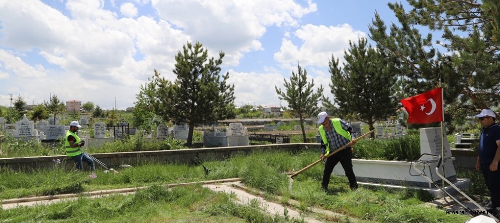 Ardahan Belediyesi ekipleri, Kurban Bayramı’na az bir süre kala başta şehitlik olmak üzere mezarlıklar ve cami bahçelerinde hummalı bir temizlik çalışması yapıyor.