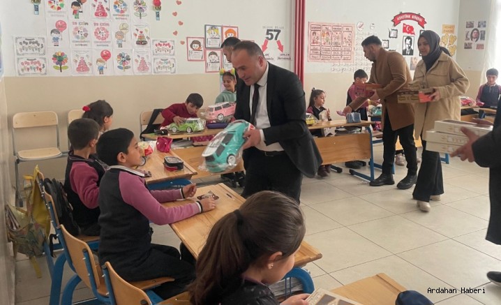 Ardahan Ülkü Ocakları İl Başkanlığı, 23 Nisan Çocuk Bayramı öncesi merkeze bağlı Sulakyurt köyü ile Hanak’a bağlı Ortakent köyünde ilkokul çocukları ile buluşarak, çocukların tamamına Ülkücü Hareketin Lideri merhum Alparslan Türkeş anısına oyuncak ve çeşitli hediyeler dağıttı. Hediyelerini alan öğrenciler büyük mutluluk yaşadı.