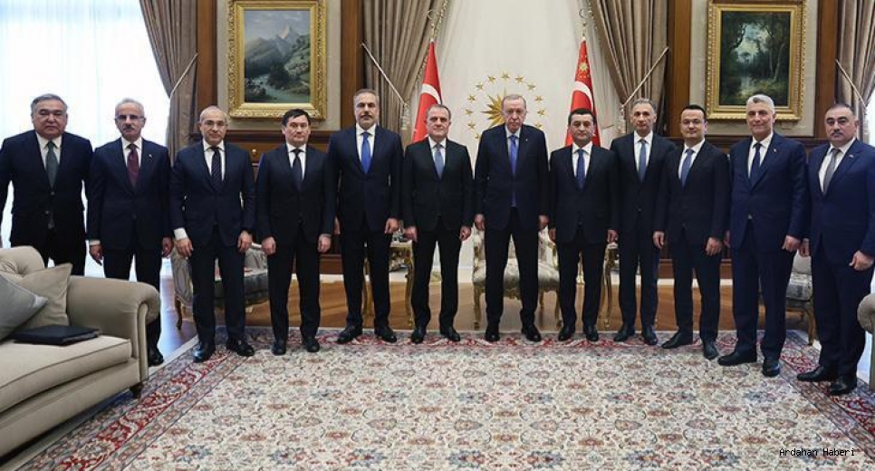 Cumhurbaşkanlığı Külliyesinde gerçekleşen kabulde, Azerbaycan Dışişleri Bakanı Ceyhun Bayramov, Özbekistan Dışişleri Bakanı Bahtiyar Saidov, Azerbaycan Ekonomi Bakanı Mikayıl Cabbarov, Özbekistan Yatırım, Sanayi ve Ticaret Bakanı Laziz Kudratov, Özbekistan Ulaştırma Bakanı İlham Mahkamov ve Azerbaycan Dijital Kalkınma ve Ulaştırma Bakanı Rashad Nabiyev yer aldı. Kabule, Dışişleri Bakanı Hakan Fidan, Ticaret Bakanı Ömer Bolat, Ulaştırma ve Altyapı Bakanı Abdulkadir Uraloğlu da katıldı.