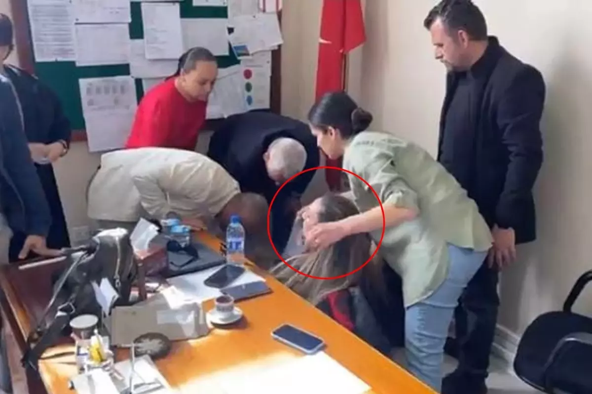 Başörtüsü krizinin giderek büyüdüğü okulda Milli Eğitim Bakanlığı yetkililerinin okul müdürü Gülden Öğçüm ile yaptığı görüşme sırasında da tansiyon düşmedi. Yaşananlar karşısında sinir krizi geçiren okul müdürünün baygınlık geçirmesi üzerine sağlık ekipleri müdahale etti.
