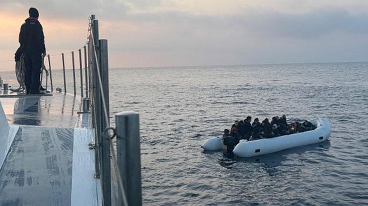 İzmir'in Seferihisar ilçesi açıklarında hareketli lastik bottaki 18'i çocuk 36 düzensiz göçmen yakalandı.