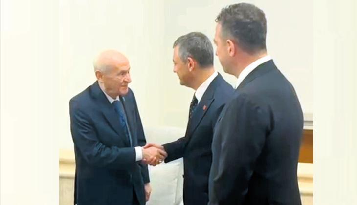 CHP lideri Özel kuliste MHP lideri Bahçeli’nin yanına giderek tokalaştı.