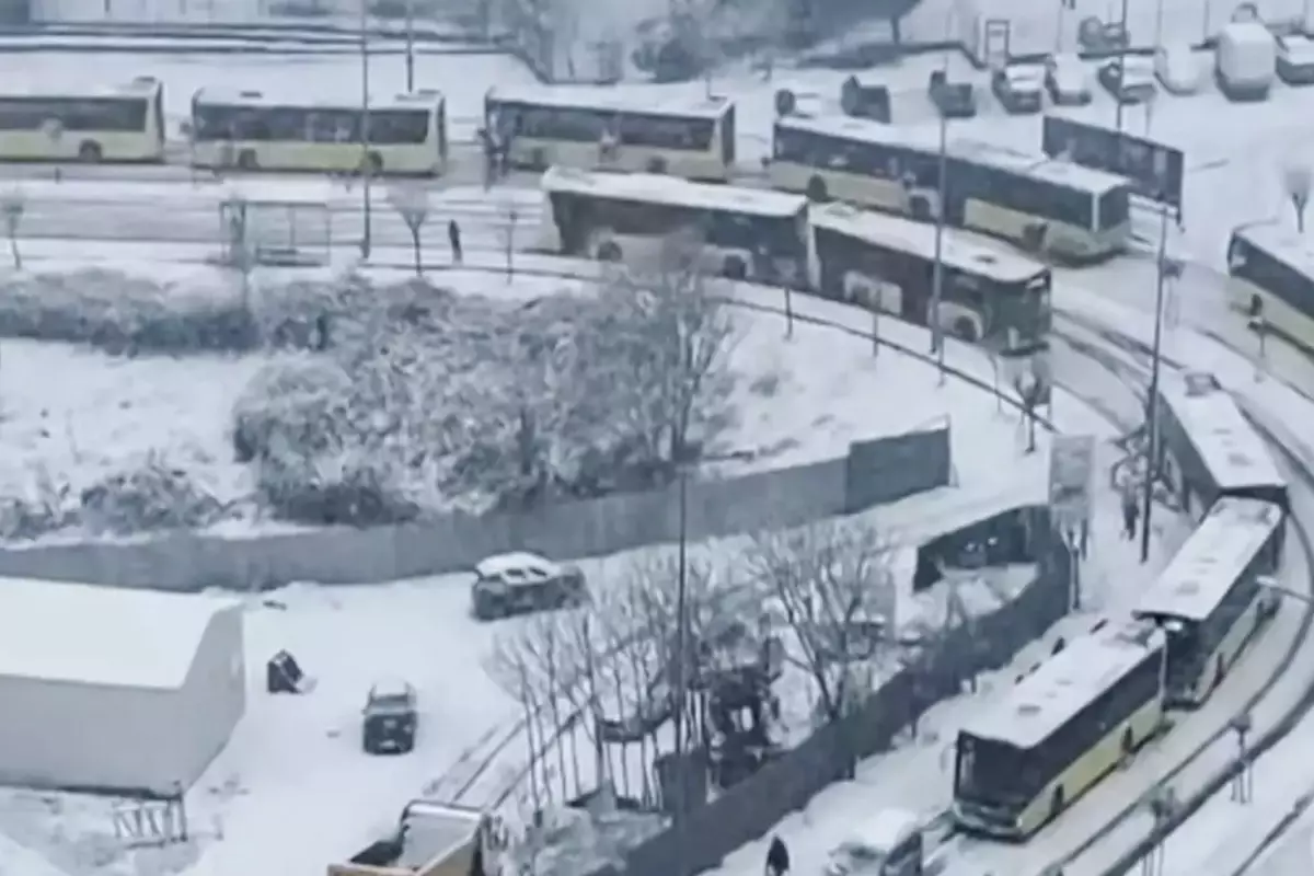 İstanbul'da kar yağışı nedeniyle ulaşımda aksamalar yaşanırken Başakşehir'deki Kayabaşı Mahallesi'nde çok sayıda İETT otobüsü yolun karla kaplanması nedeniyle mahsur kaldı.